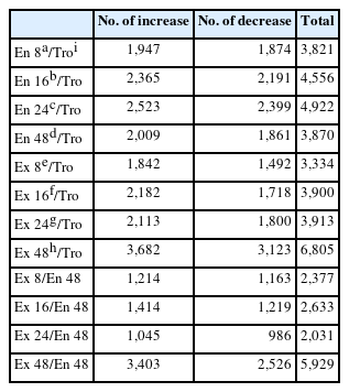 Table 1Number of genes showing significant increase or decrease (more than 2-fold) during encystation and excystation
