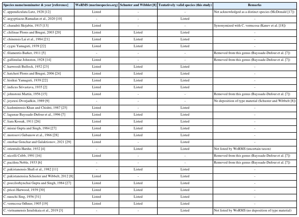 7]. As a result, a total of 22 species are considered tentatively valid in this study (