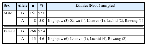 Table 1Prevalence of the Mahidol variant (G487A) in Kachin State