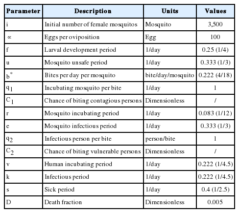 Note: the parameter values for periods are calculated by taking a reciprocal of the period days obtained from an expert’s opinion and Albin [23].