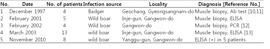 Table 3.Outbreaks of trichinosis occurred in Korea
