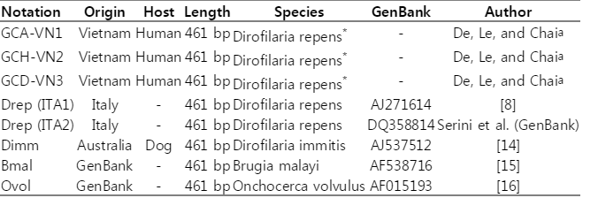 Table 2.Sequencing of the portion cox1 of different filarial species from GenBank compared with Dirofilaria repens* in Vietnam
