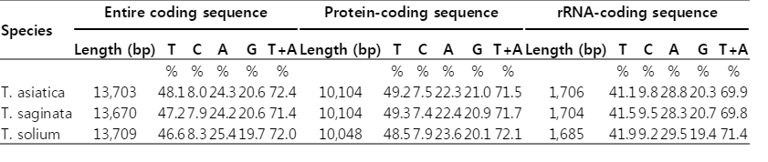 Taenia tapeworms comprised more than 70% AT of the total mitochondrial genome (