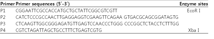 Primer Primer sequences (5´-3´) Enzyme sites P1 CGGAATTCGCCACCATGCTGCTATTCGGCGTCGTT EcoR I P2 CATCTCCCGCCAACTTGAGGAGGTCGAAGTTCAGAA GTGACGCAGCGGATAGTG P3 CTCAAGTTGGCGGGAGATGTTGAGTCCAACCCTGGG CCCGGCTCTACCTCTTTGG P4 CGTCTAGATTAGCTGCCTTTCTGAGTCGTG Xba I
