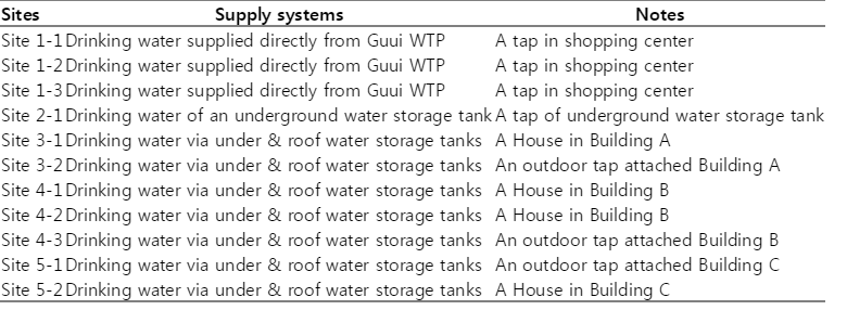 Table 1.Supply systems on sampling sites