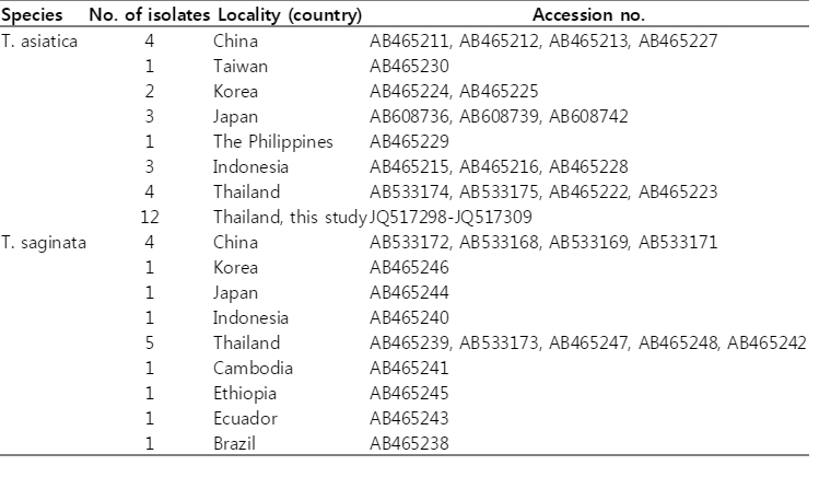 T. asiatica from 7 different countries (China, Taiwan, Korea, Japan, the Philippines, Indonesia, and Thailand) (
