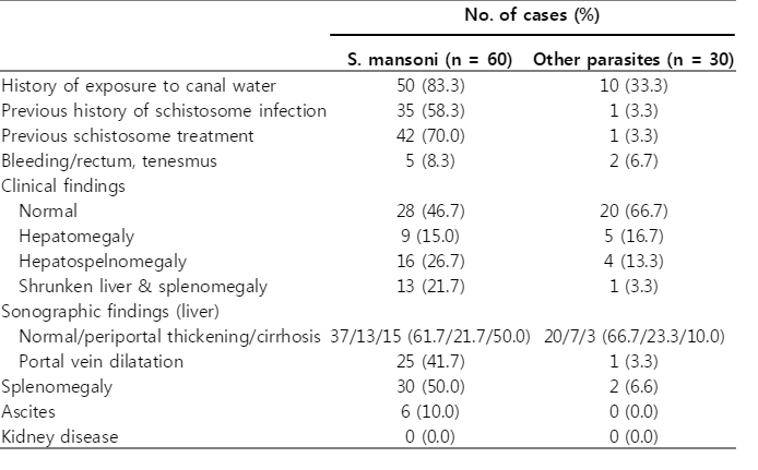 Table 1.Clinical and sonographic findings of S. mansoni and other parasite-infected groups