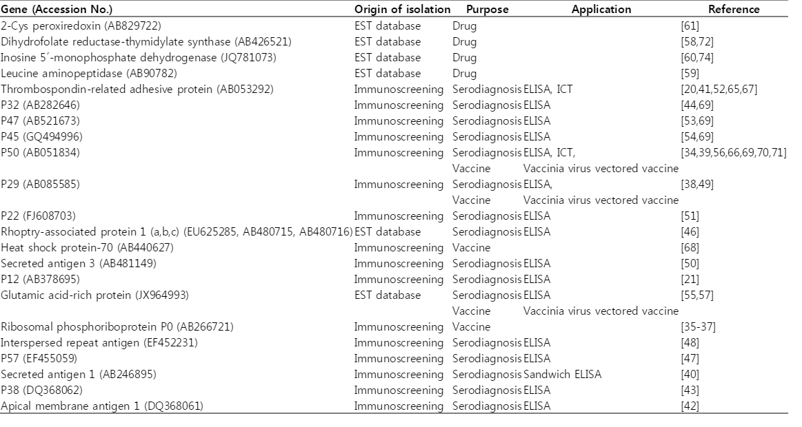 Table 1.List of genes identified for possible diagnostic, vaccine, or drug use for Babesia gibsoni infection