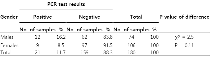 Table 5.PCR test results (number and percentage) distributed by gender