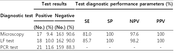 Table 6.The diagnostic performance of microscopy and the LF test versus the PCR test results