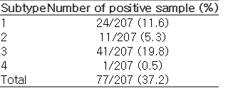 The subtyping of Blastocystis was identified by direct sequencing method. ST1-ST4 were found; ST3 (19.8%; 41/207) was the predominant subtype, followed by ST1 (11.6%; 24/207), ST2 (5.3%; 11/207), and ST4 (0.5%; 1/207), respectively (Table 2). Other STs were not detected.