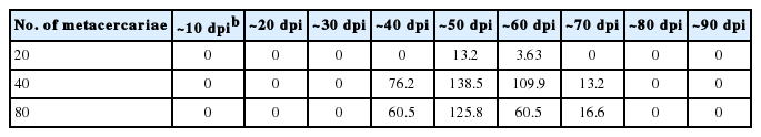 23] (female) were inoculated with 20, 40, or 80 metacercariae of