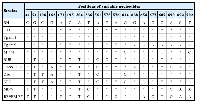 • 6. Su C, Zhang X, Dubey JP. Genotyping of Toxoplasma gondii by multilocus PCR-RFLP markers: a high resolution and simple method for identification of parasites. Int J Parasitol 2006;36:841-848.