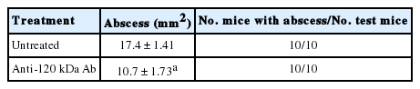 Table 1.Mouse subcutaneous abscess produced by T. vaginalis (T016) pretreated with anti-120 kDa Ab