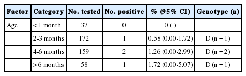 Factor Category No. tested No. positive % (95% CI) Genotype (n)