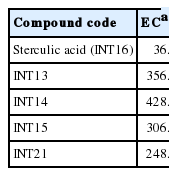 Sterculic acid (INT16) 36.2 ± 5.1 215.2 ± 15.8 5.9