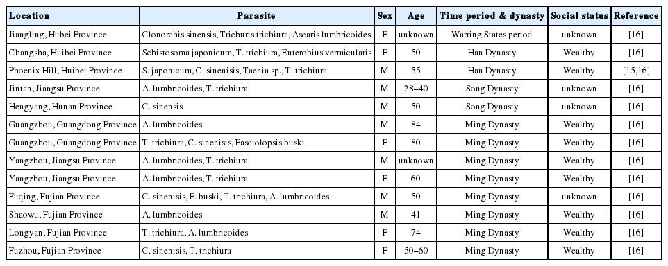 3]. In the past, parasite evidence from China has often been obtained from naturally preserved mummies that were analyzed by anatomists or physicians (