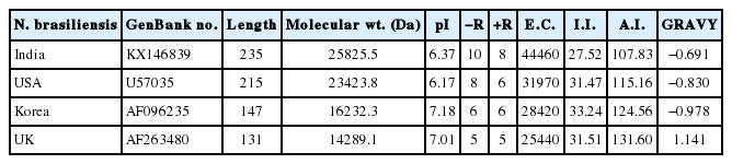 N. brasiliensis isolates was performed using the ProtParam [