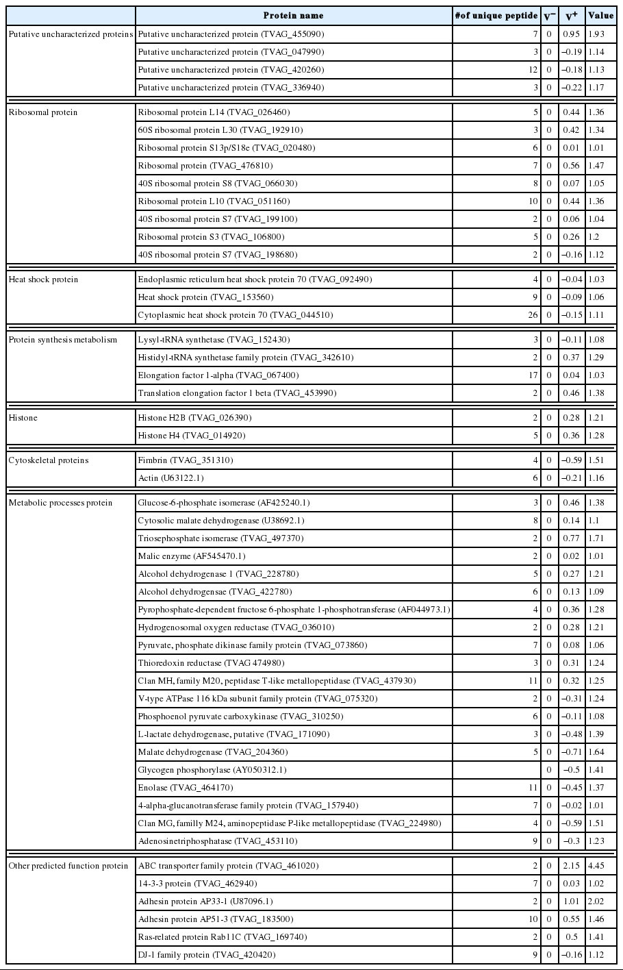 Cytoplasmic heat shock protein 70 (TVAG_044510) 26 0 −0.15 1.11