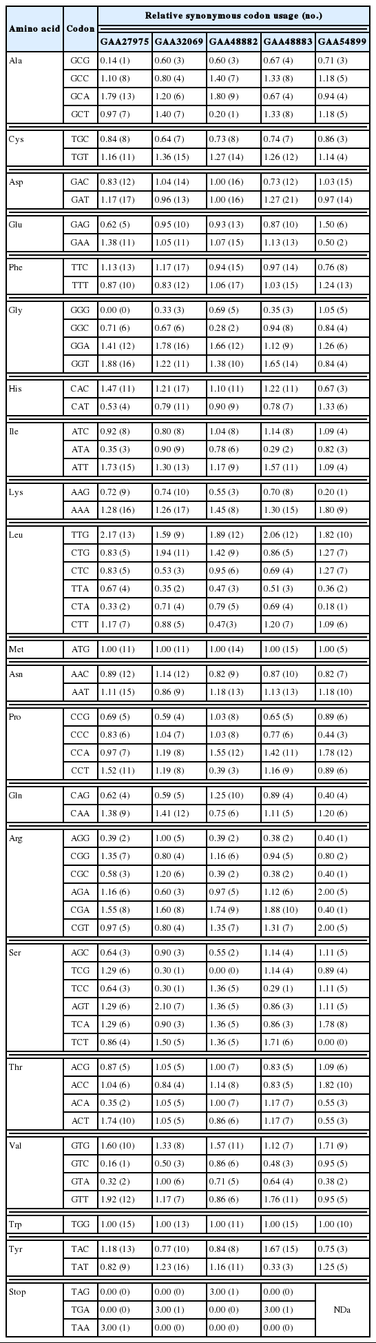 - 36. Gupta SK, Bhattacharyya TK, Ghosh TC. Synonymous codon usage in Lactococcus lactis: mutational bias versus translational selection. J Biomol Struct Dyn 2004;21:527-535.