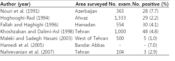 Table 2.A brief review of the reported prevalences of human cryptosporidiosis in Iran
