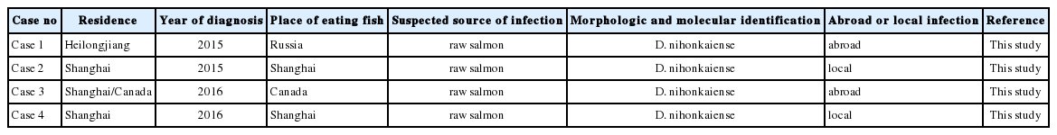 Table 3Summary of the human infection cases with D. nihonkaiense in China of this study