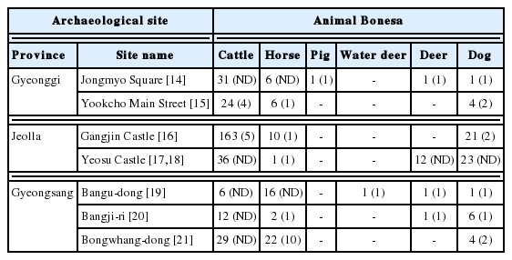 Table 1Animal bones collected in archaeological excavation sites of Joseon period