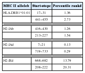 aThe immune epitope database (http://tools.immuneepitope.org/mhcii). The prediction was run 3 times.
