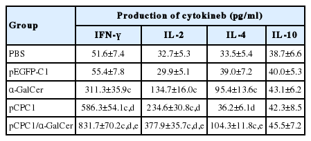 Table 2 The level of cytokines produced by splenocytesa from immunized mice