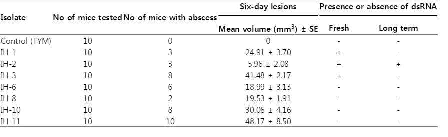 Table 1.Relationship between pathogenicity of T. vaginalis Korean isolates and the presence of T. vaginalis virus dsRNA