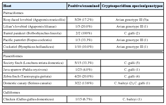 Table 2 Bird species determined to be infected with Cryptosporidium spp.