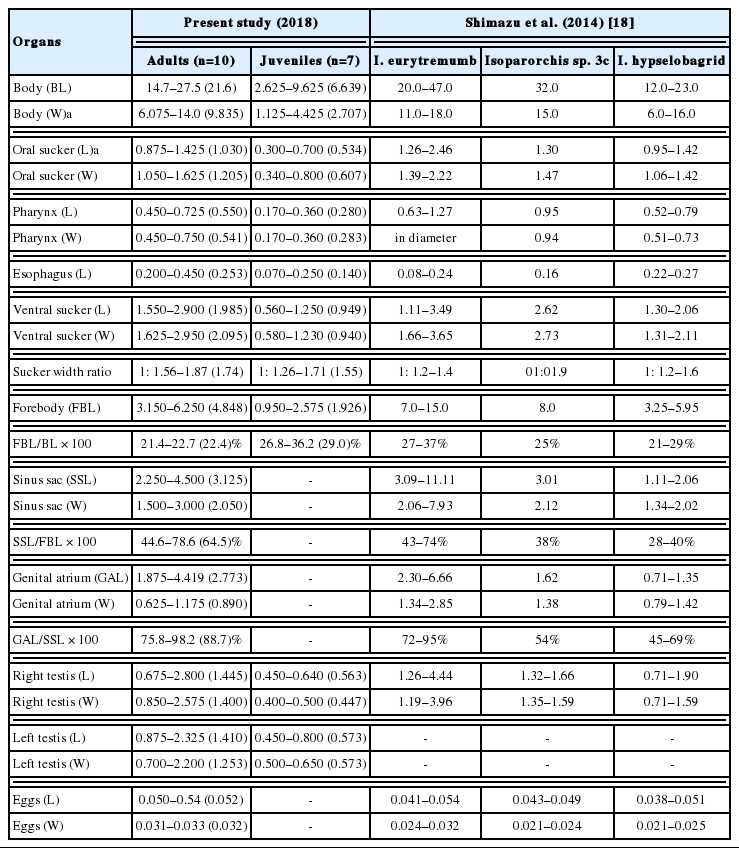 Isoparorchis sp. 3. Therefore, we intended to describe here the morphological characteristics for the specis identification of