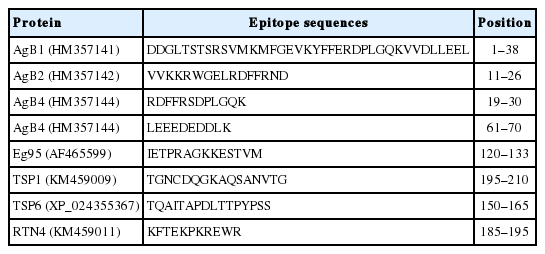 Table 1Epitope sequences selected from different antigen proteins of Echinococcus granulosus