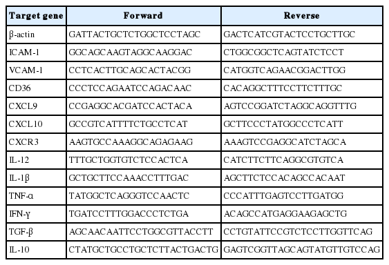 VCAM-1 CCTCACTTGCAGCACTACGG CATGGTCAGAACGGACTTGG