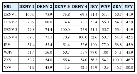 NS1 DENV 1 DENV 2 DENV 3 DENV 4 JEV WNV ZKV YFV