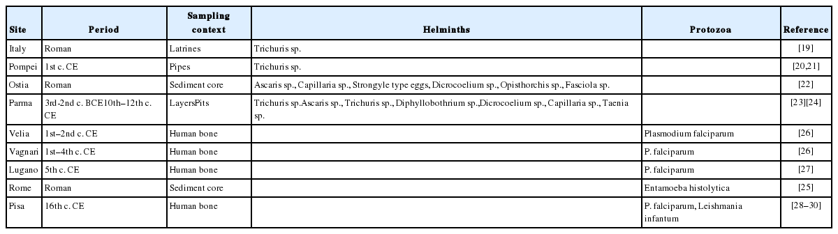 28]. Co-infections among parasites and bacteria dating back to the Roman Period have also been identified outside Italy [