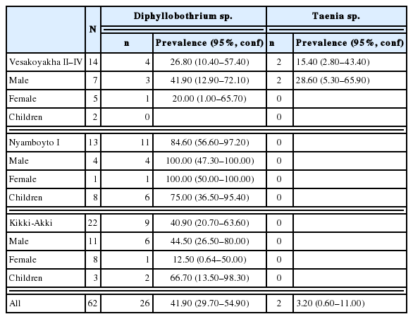Table 2). Obviously, higher diphyllobothriasis rate must have been related with a fishery-based, sedentary life in history whereas lower rate of diphyllobothriasis represents a nomadic lifestyle of reindeer herders whose diets were mainly composed of meats.