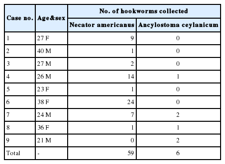Table 2Collection of hookworms among 9 people in Kampong Sangkae village, Preah Vihear Province, Cambodia