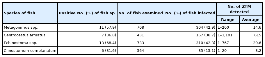 Table 4Overall infection status with other zoonotic trematode metacercariae (ZTM) in fishes