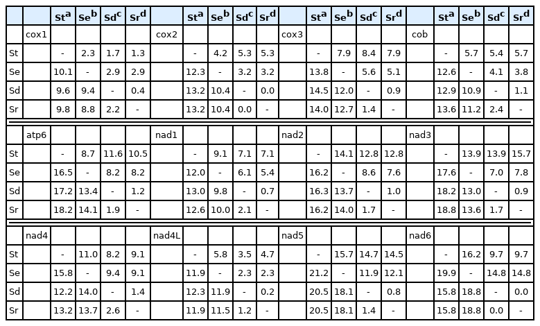 Table 4 Divergences of nucleotides and amino acids of the protein-coding genes