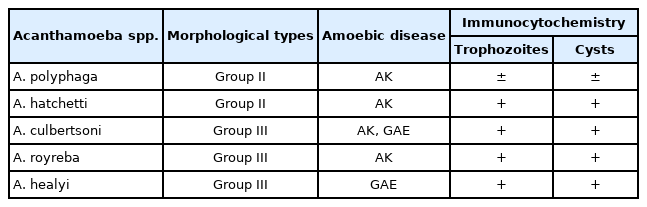 Acanthamoeba spp. Morphological types Amoebic disease Immunocytochemistry