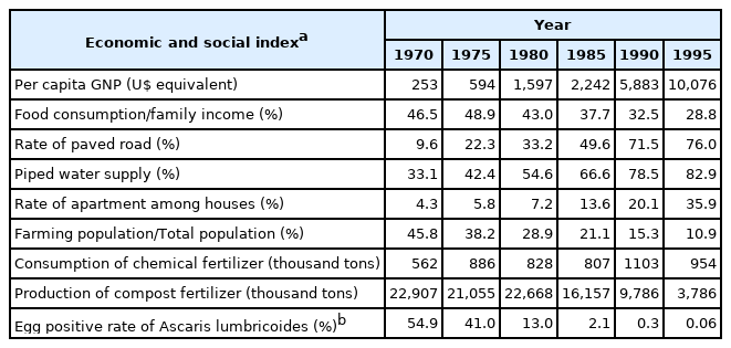 - 40. Kim DC, Lee OY, Sung WY, Kim TW, Han EJ, et al. Studies on the control of ascariasis and hookworm infections by periodic mass treatment - First year report. Report of NIH, Korea 1970;7:281-306. (in Korean).