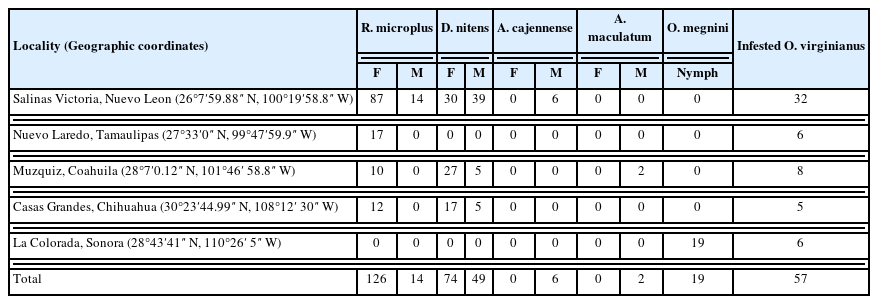 R. microplus (from NL, Tam, Coah, and Chih) and