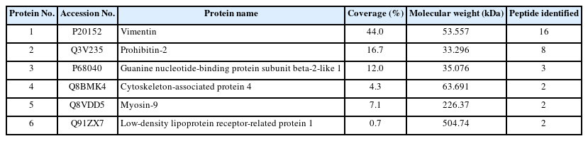 Table 1.The results of silver stain gel identified by mass spectrometry
